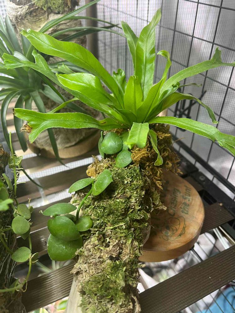 流木にアスプレニウムとディスキディアを水苔で着生させて10カ月
