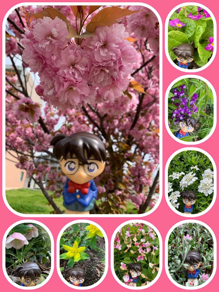 八重桜も満開でコナン君の瞳も桜色に輝いて可愛い💕