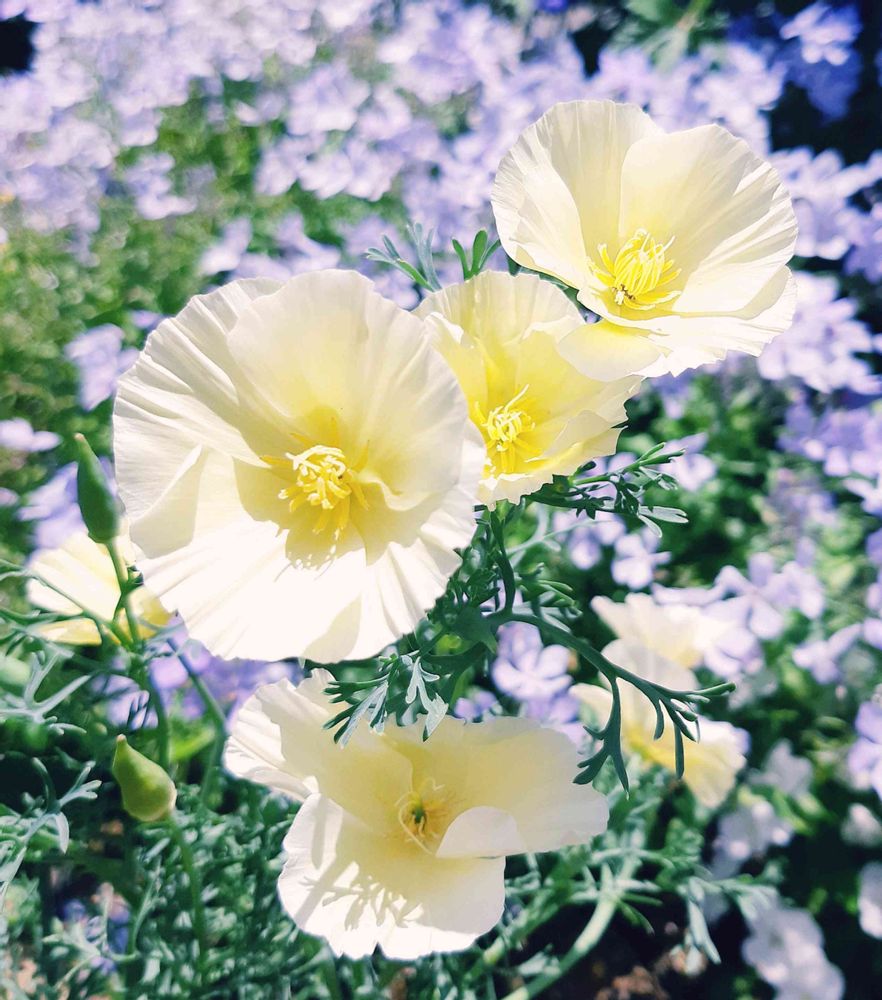 カリフォルニアポピー、鮮やかな黄色やオレンジのイメージだったのが、優しいクリーム色に惹かれて今年初お迎え、割と長く咲いてくれています😊💠