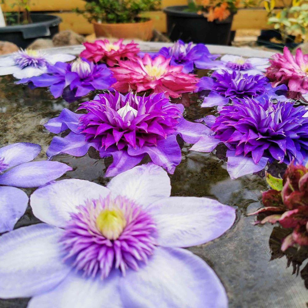 水に浮かべた色々なクレマチス綺麗♡