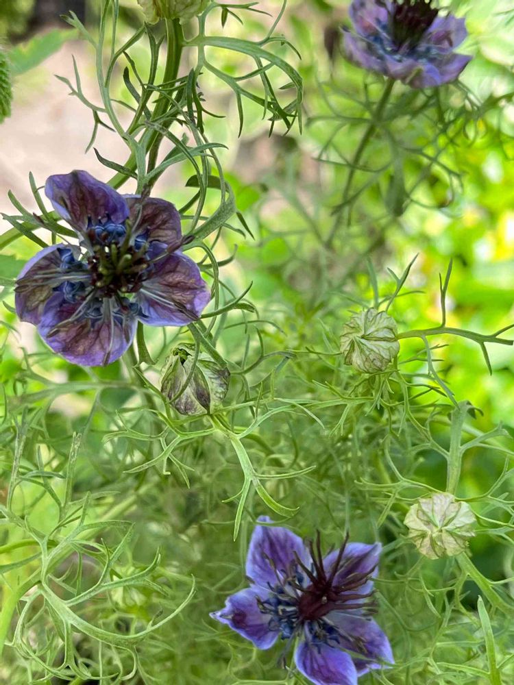 ニゲラ ミッドナイト💙🖤💜咲き出しましたおぎはら植物園から購入しました✨普通のニゲラは種子で入手できますがこの色は苗で入手しました🕺🏻