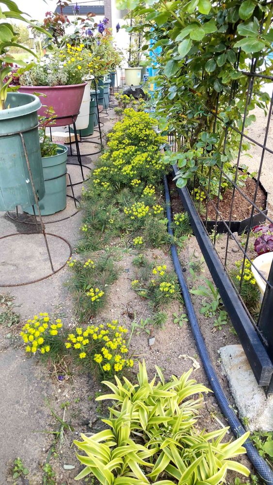 今年はアチコチから芽をだしてきたけどこのラインに移植。表面だけわずかな砂土、下端砕石の厳しい場所だからこそ、乾燥にも強い君に頑張ってもらいたい😉