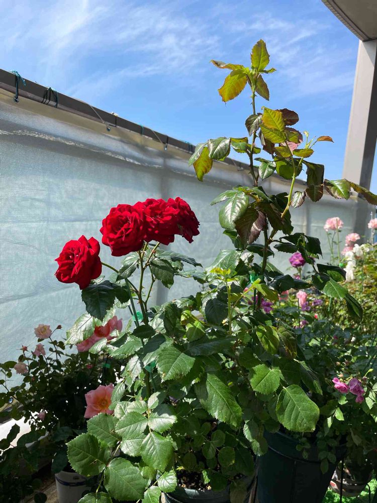 強風のベランダで、バラは負けない‼️嬉しくってバラ鉢だらけになっちゃいました💕品種不明のバラばかりなので鉢に名前をつけてます✌️ 2020年4月からバラ生活が始まり、GSは5月末から参加しました。みなさんからいろんな植物の話が見聞き&おしゃべりできてとっても楽しいです。ありがとぉです💕どうぞよろしくです。