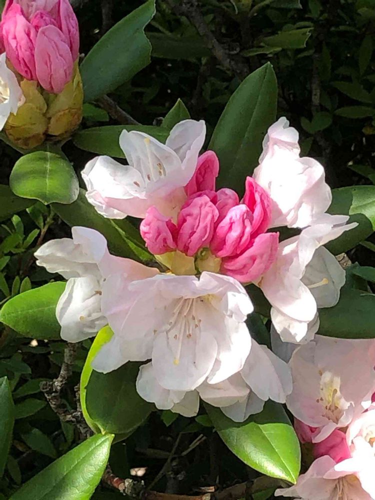 シャクナゲさんは、ピンクの蕾🩷が白いお花🤍に変化するのは面白いですね〜