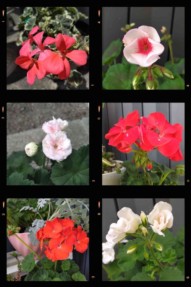 朝イチ6種類のゼラニウムさん集合したよ🥳この中にレッドさんとオレンジさんいるけどわかるかな❔