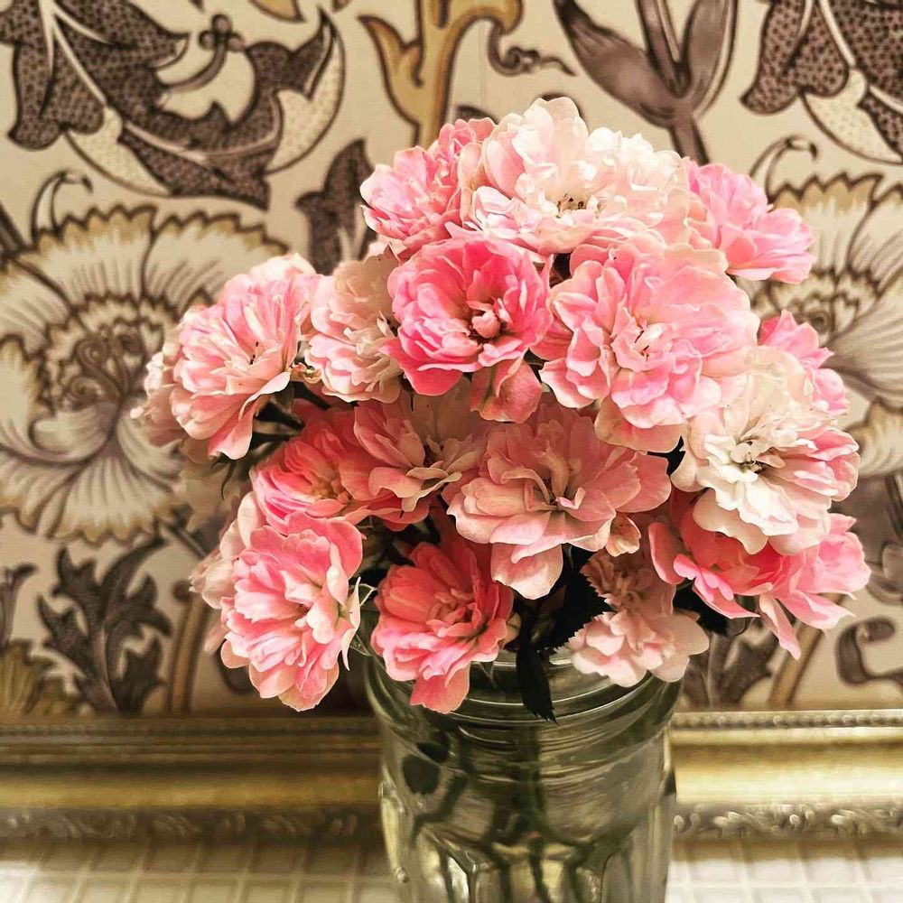 ミニバラ…トゲが痛いのよぉ〜😑でも可愛いからトゲを取り除いて楽しみます🥹