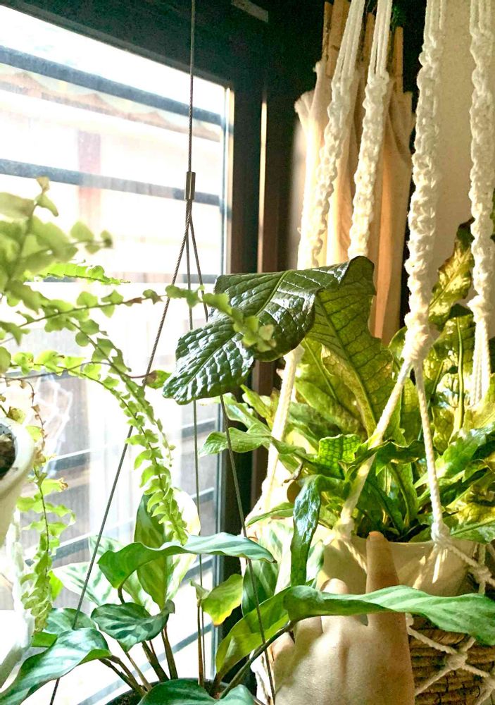 窓にぶら下がっているシダとカラテアにはこれくらいの光量で大丈夫そう。
