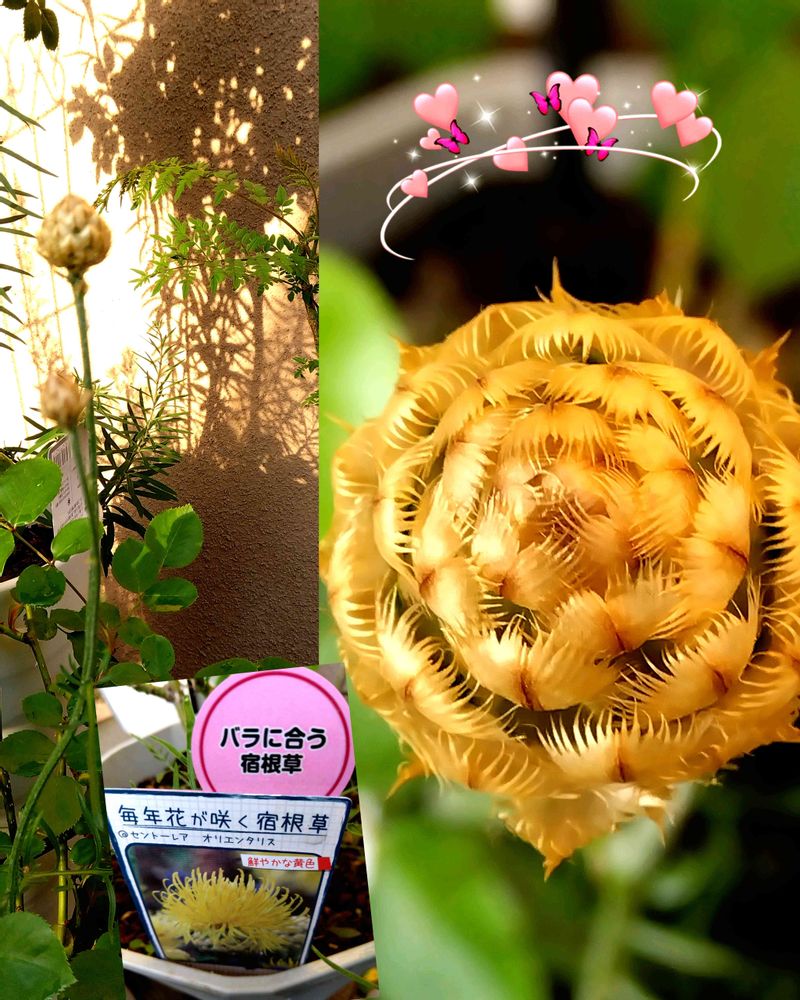 バラ🌹との相性が良い‼️宿根草♪植えてみました~初夏にアザミに似た花が‥鮮やかな🟡黄色らしぃ〜*( ꈍᴗꈍ)〜*