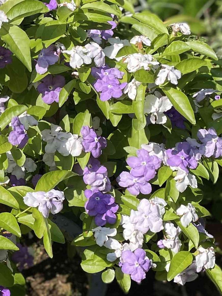 白と紫の市松模様のように咲き誇るバンマツリが、とても愛らしいので癒やされました。