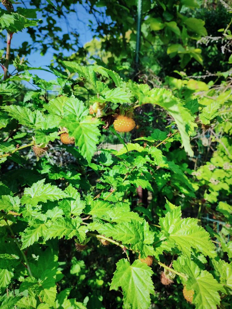 モミジイチゴがそろそろ食べ頃みたいです😄もう少し熟すのを待ちたいけど、これから鳥に見つかるまでが戦いです🤨網をかけたいところだけど、ここのスペース大きいから難しいな…