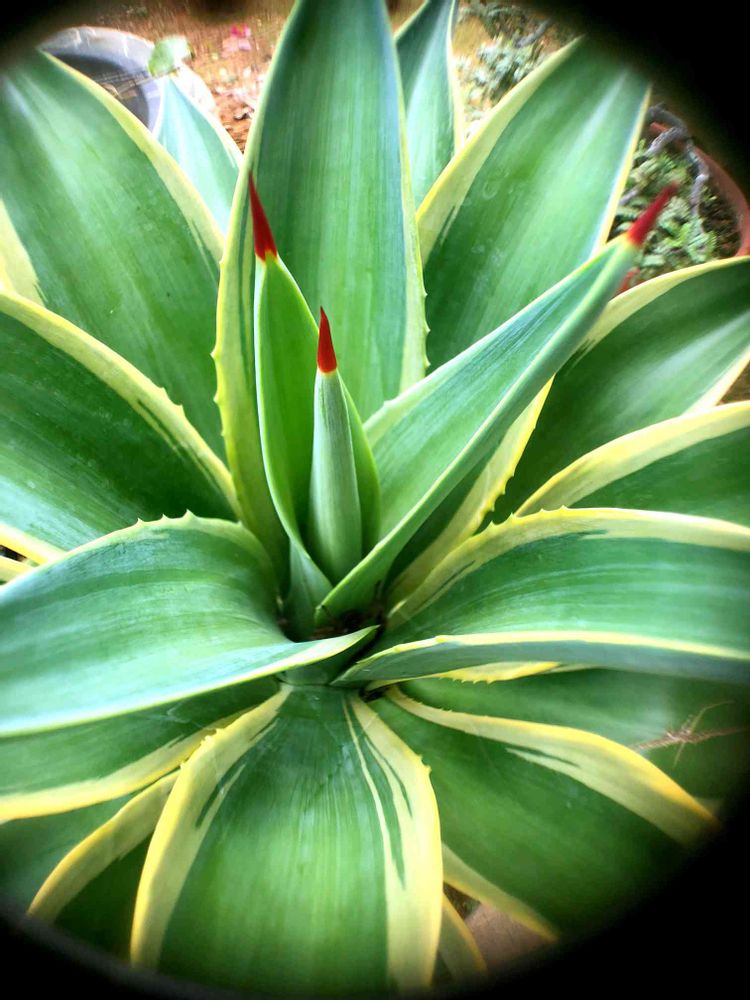 我が家のアガベちゃんは、中心が赤いですよ😊