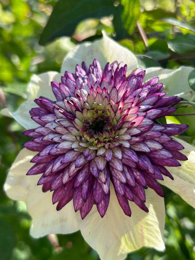 花びらが白、蕊が紫色と白で素敵な色合いのクレマチスですね✨