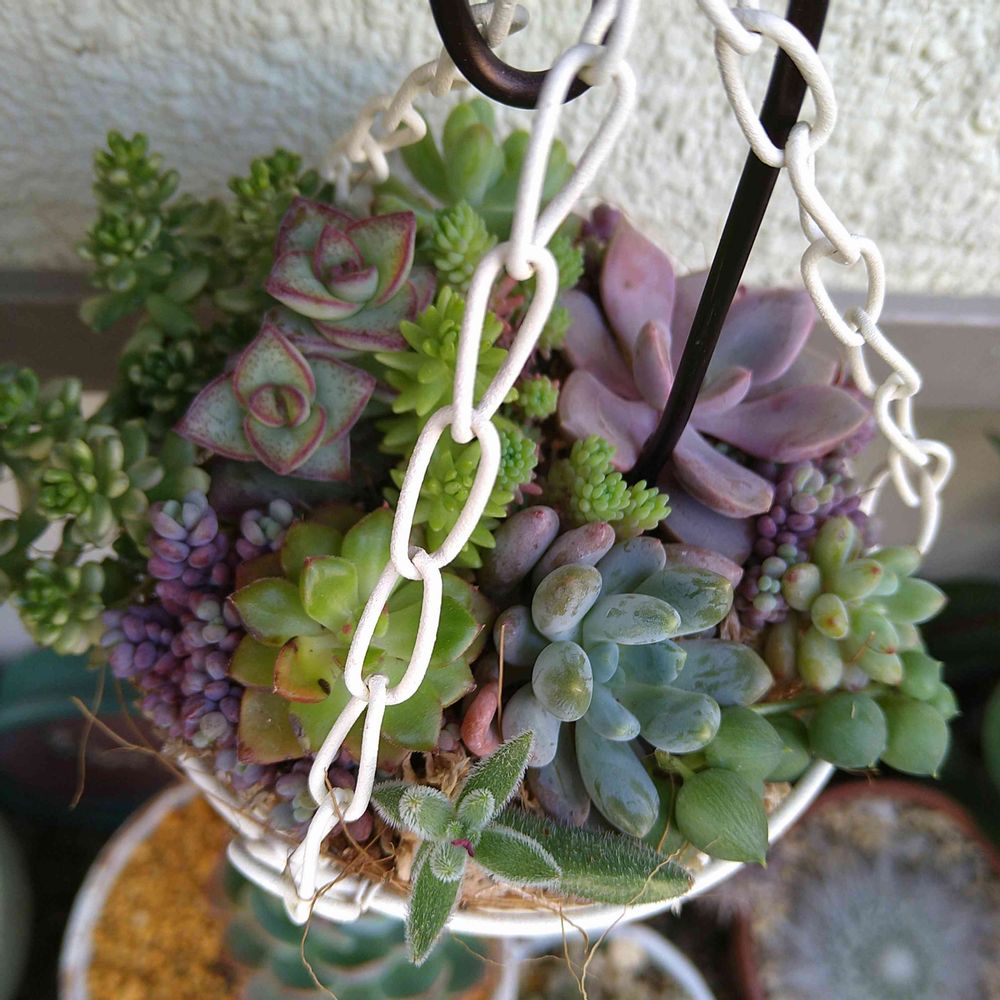 はい!可愛い寄せ植えがぶら下がっています🤭