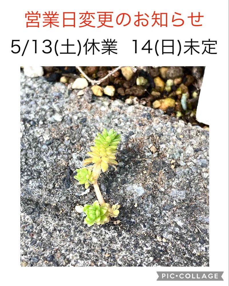 明日 5/13(土) は営業予定でしたが、終日雨天予報のため休業とさせていただきます。