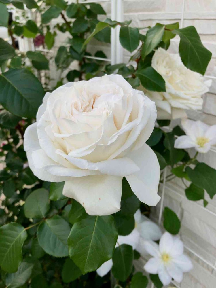 シミひとつない純白の薔薇さん、とても綺麗に咲いてますね😳