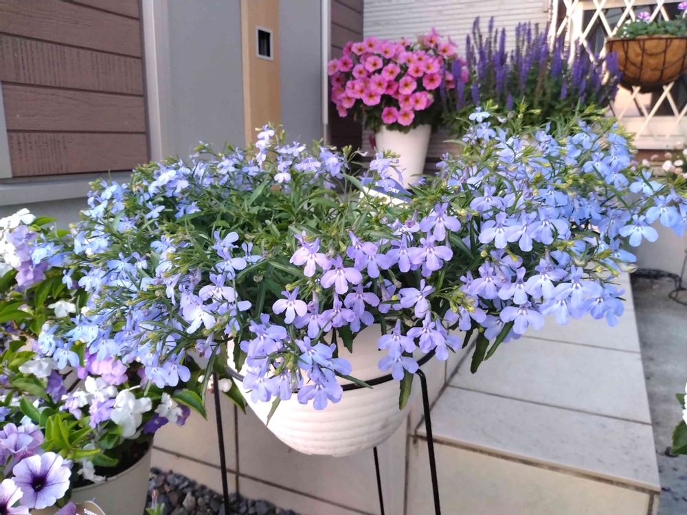 去年はブルーウィズアイを、8号深鉢に3株植えで夏越しできずに枯らしてしまったので、