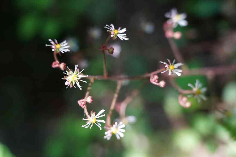 ホシザキユキノシタ。ユキノシタ科ユキノシタ属。筑波山で発見され、筑波山のみに生育する固有種。花弁の形が一般に見られるユキノシタと少し違います。星が光っているみたいで、可憐な花です。