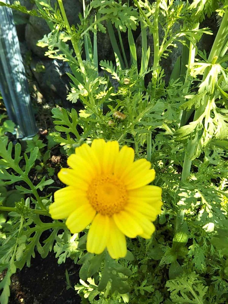 初めて春菊を種から育てましたが、なんて育て甲斐がある!どんどん大きくなって、和え物に炒め物にお汁に…と食べ切れずどうしたものか、と悩んでいましたが、収穫を急がずに、かわいいお花を待つことにしよ〜😊❤️