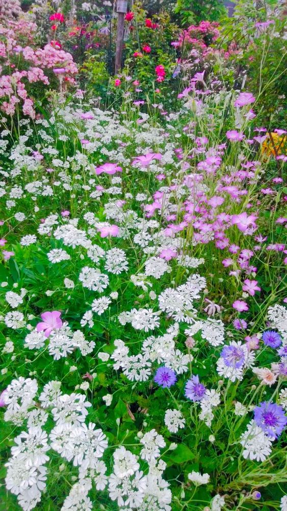 沢山の花達が咲き乱れて、理想的な庭です。憧れます。