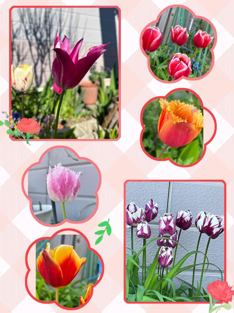 小さな庭に、色々なチューリップが咲いていました可愛らしい💕