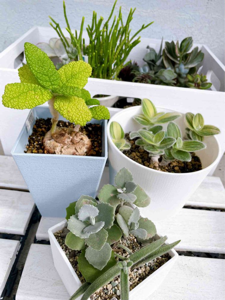 ネギみたいな子は手前のクラッスラ属だけの表記で売られていて、謎クラッスラです😂