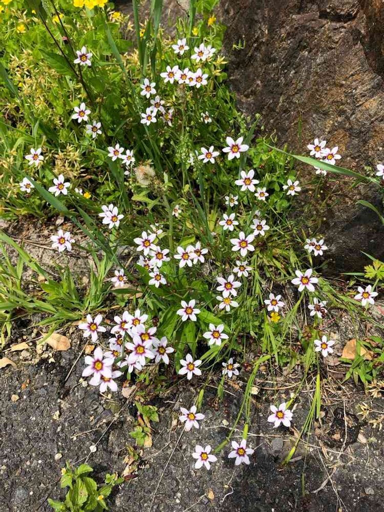 近所を歩いていたら、白いニワゼキショウの群生に遭遇。