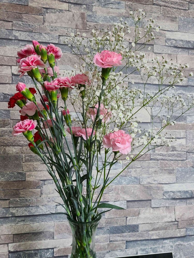 母の日にカーネーションとカスミソウのプレゼント😀