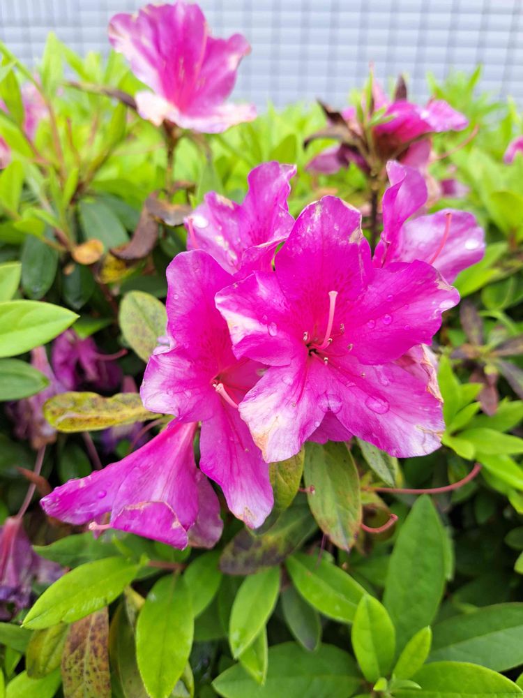 雨上がりのツツジの花に、しずくがついていてとてもきれいです