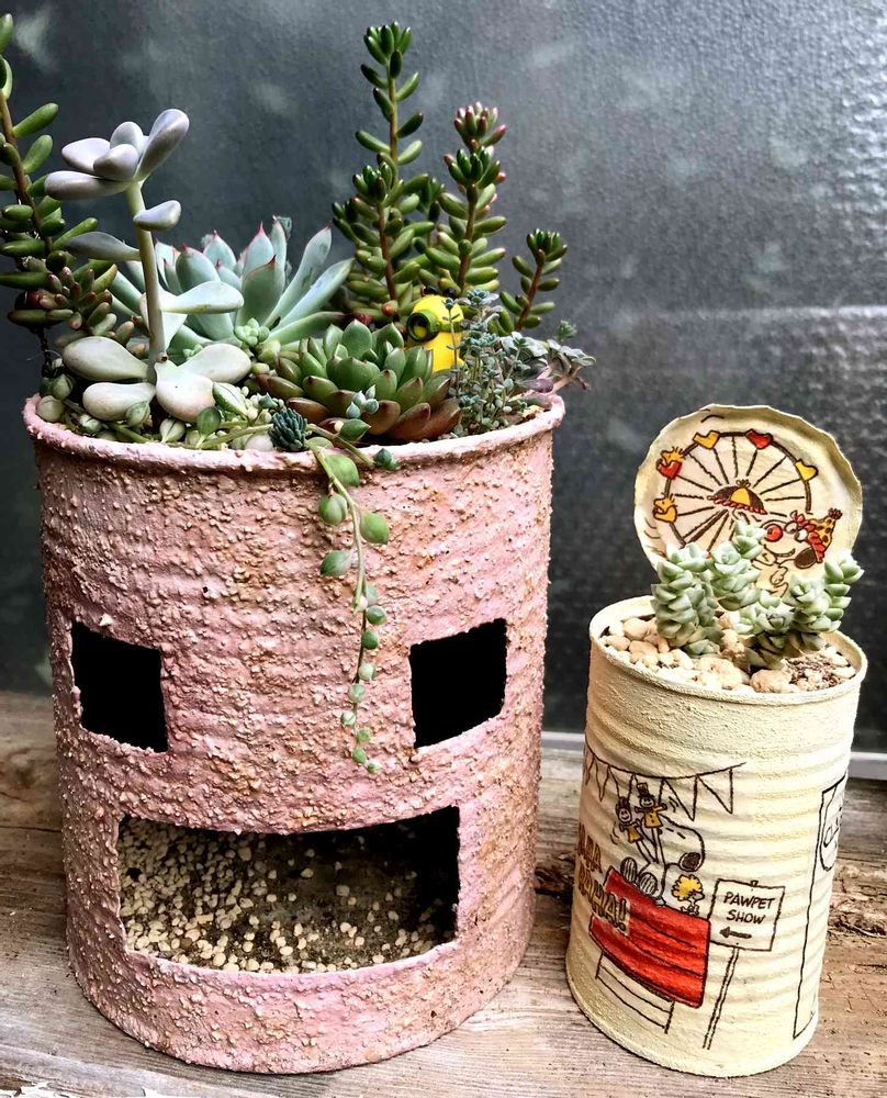 そうなんです。タニコロちゃんの缶はかなりの大きさ!!タニコロちゃんと同じく存在感大です(๑•̀∀- )وそしてどれもこれも元気に育っております🎶kaoruちゃんの可愛いリメ缶もいいでしょ♡♡♡