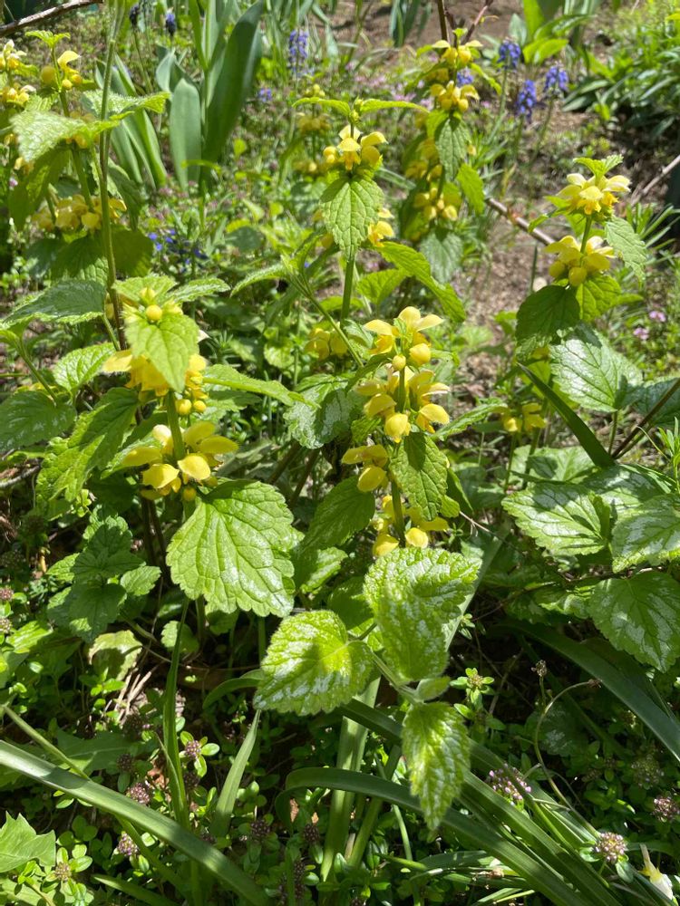ラミウムガリオブドロンがブルーベリーの周りにわさわさと。