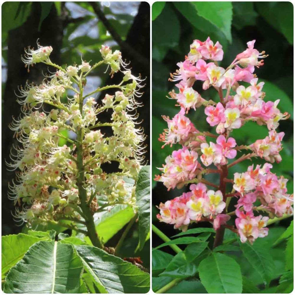 トチノキ(左)とベニバナトチノキ(右)が綺麗に咲いていました。