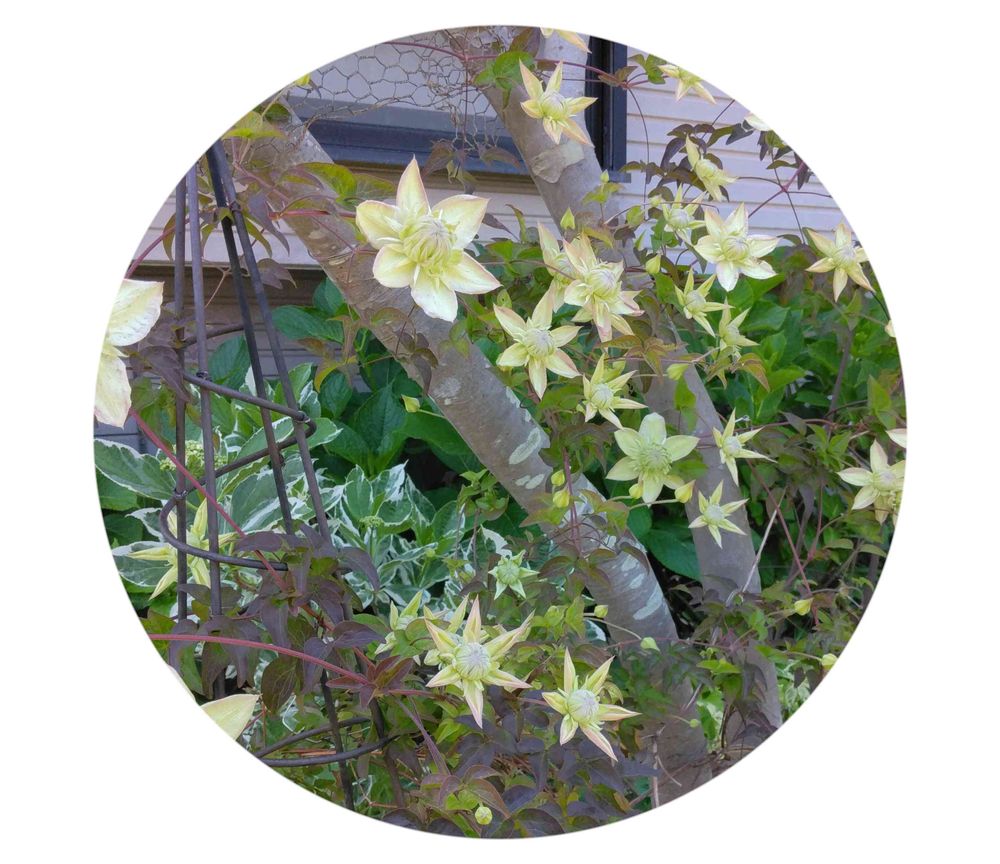クレマチスは アッというまに 延びて 絡んじゃうから なかなか 思い通りになりませんネ😔