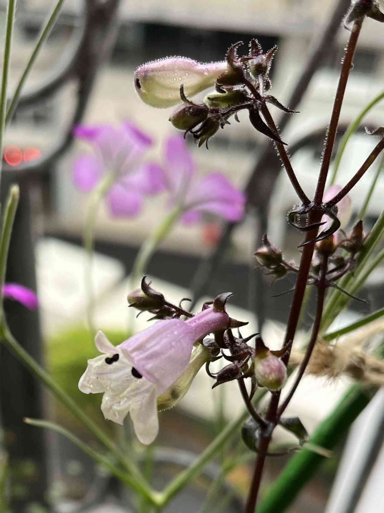 雨が降って寒い中、ペンステモンの1番さんが咲きました😊