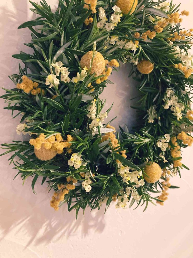 昨日、ちちさんから箱いっぱいのローズマリーをいただいたので、ビタミンカラー💛リースを作ってみました(*ˊ˘ˋ*)