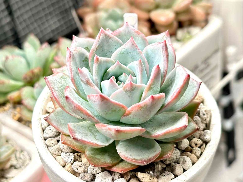 又は、買われてから肥料の入っていない培養土で育てると、中心は締まったロゼットで外葉だけが長いって状態になります。