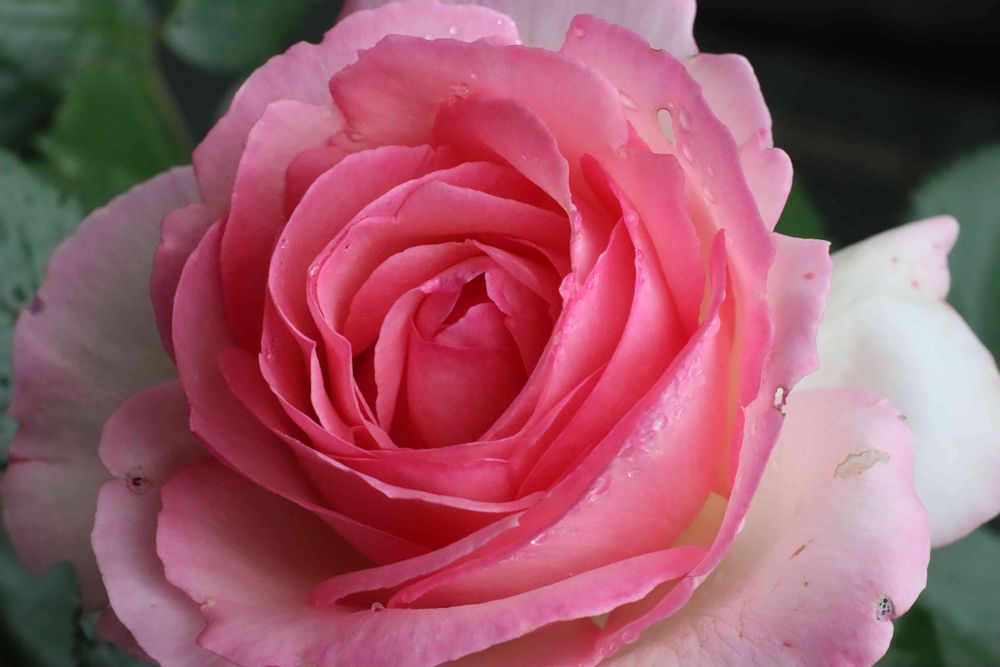 小雨の降る庭でバラ ピエールドロンサールが咲いています。