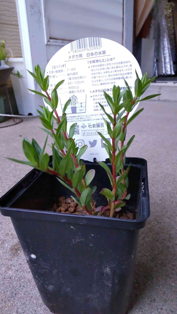 そんな時、プランター用の野菜の土を買いに行ったホームセンターで売られていた「メダカ用 日本の水草」にミソハギを見つけました。