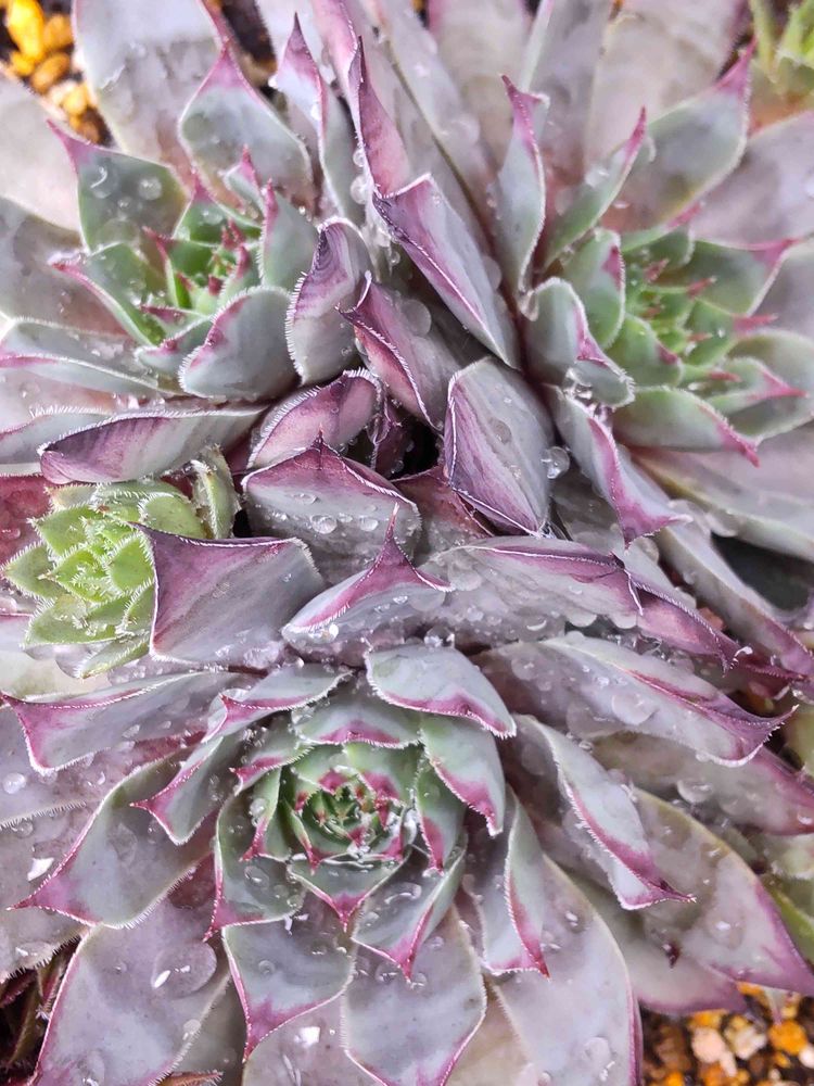 雨の後の センペルビウム・ブルーボーイさん😻🤍💜💚
