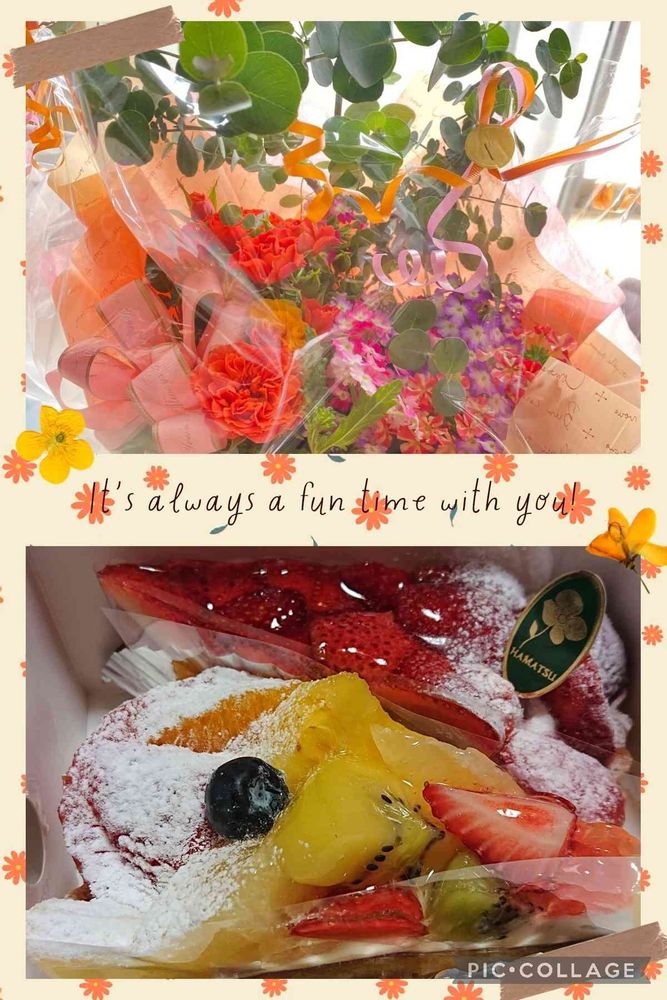 綺麗な花と美味しいケーキ🍰で、幸せな気分になりました🥰