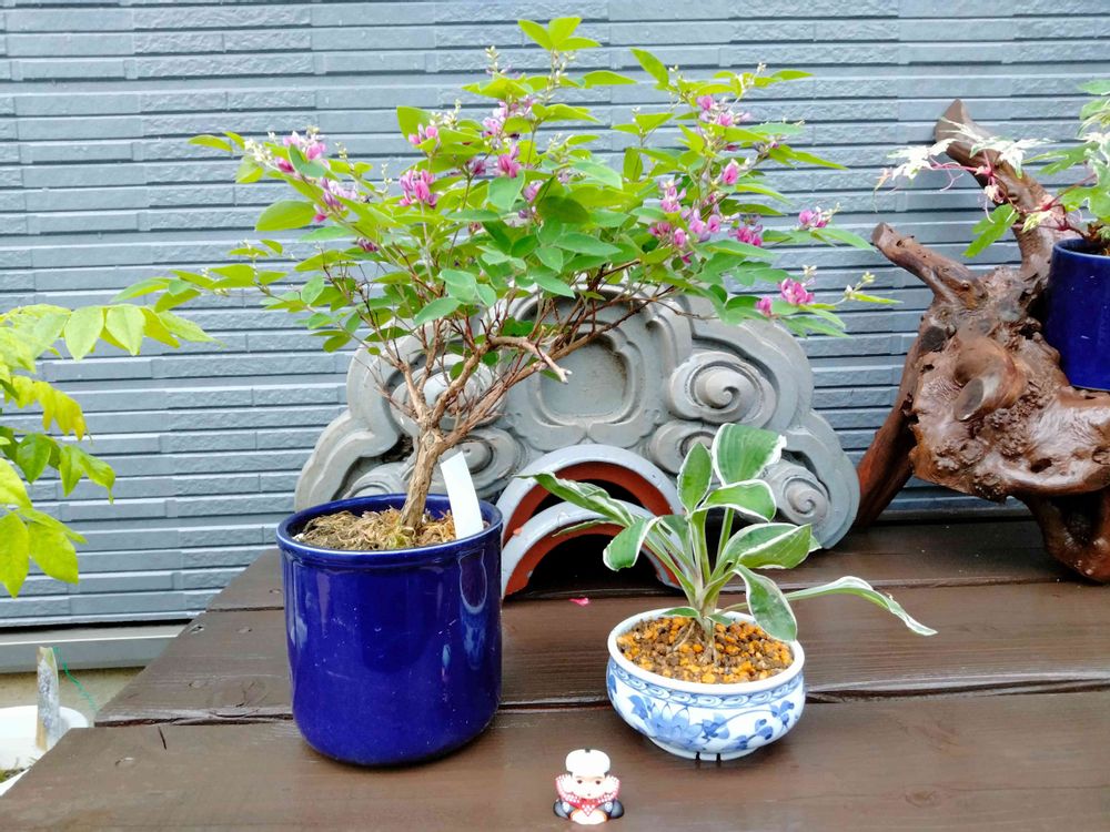 木萩は盆樹としてメジャー、ギボウシも草物盆栽としてメジャー。