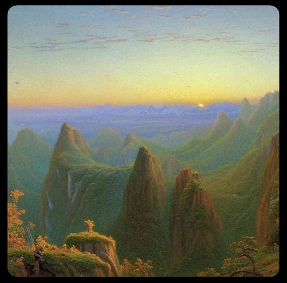 10K,高品質,写実的,油絵, 風景画 , リアル, 絶景, 高千穂峰の山頂からの眺め,夕暮れ, イワン・クラムスコイ