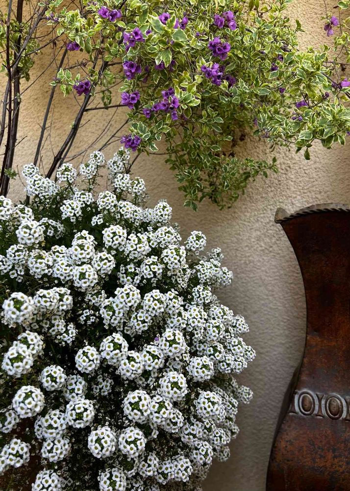スーパーにたわわになってしまったスーパーアリッサムに、奥はミントブッシュ(プロスタンテラ)です。