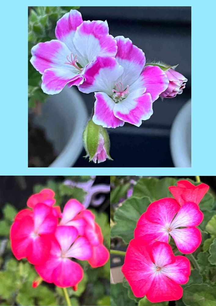 ベランダでいろいろなゼラニウムたちが咲いています。😊🤗💕