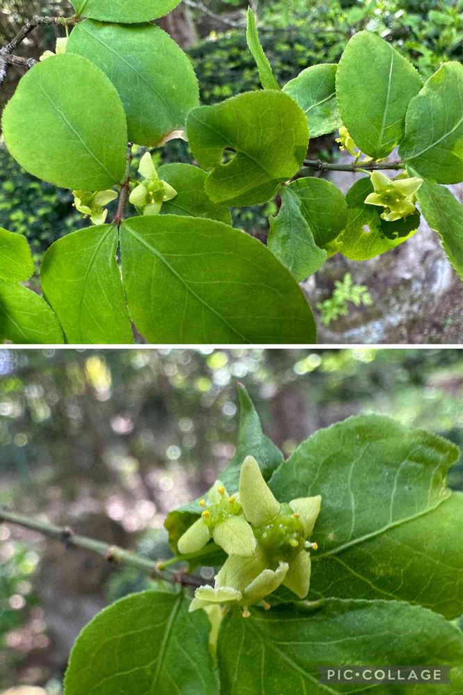 ニシキギ科の樹木の花はどれも似たような地味さですね😅 赤い果実と橙色の仮種皮の種子はとても目立つのにねえ…