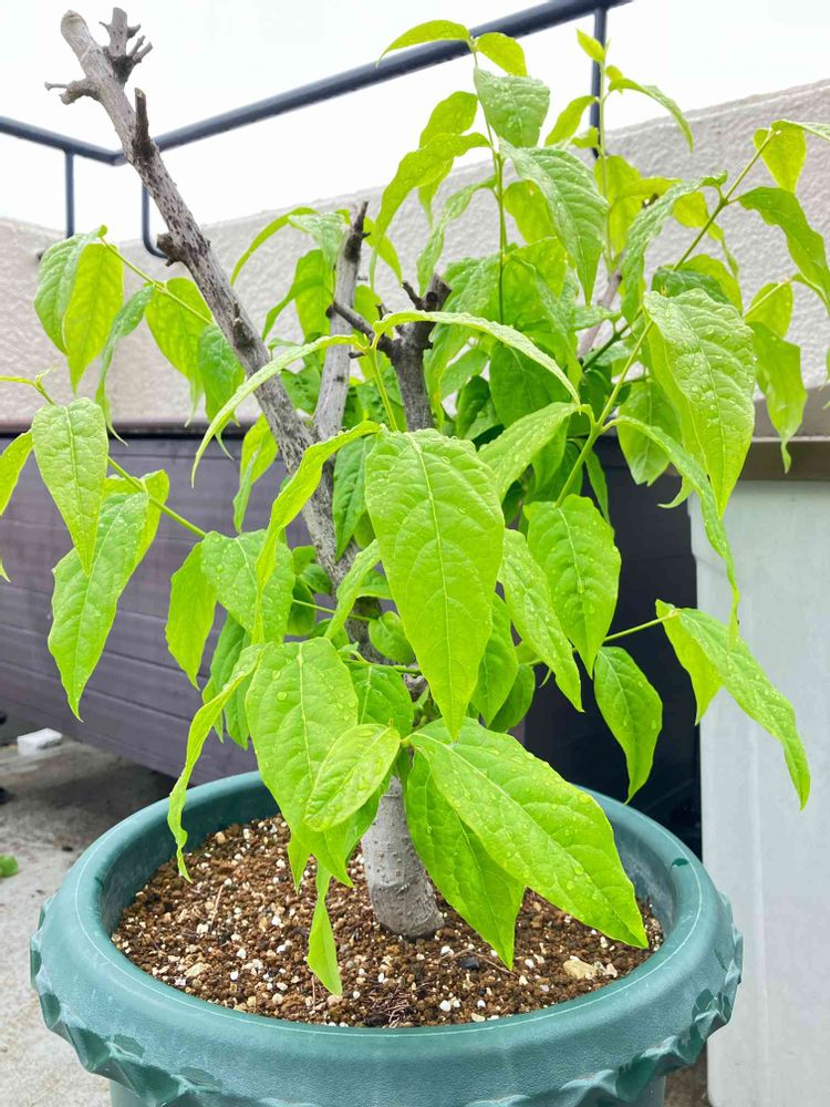 鉢栽培だから、そんなに大きくは育たない方が良い為、コレはコレで良い。