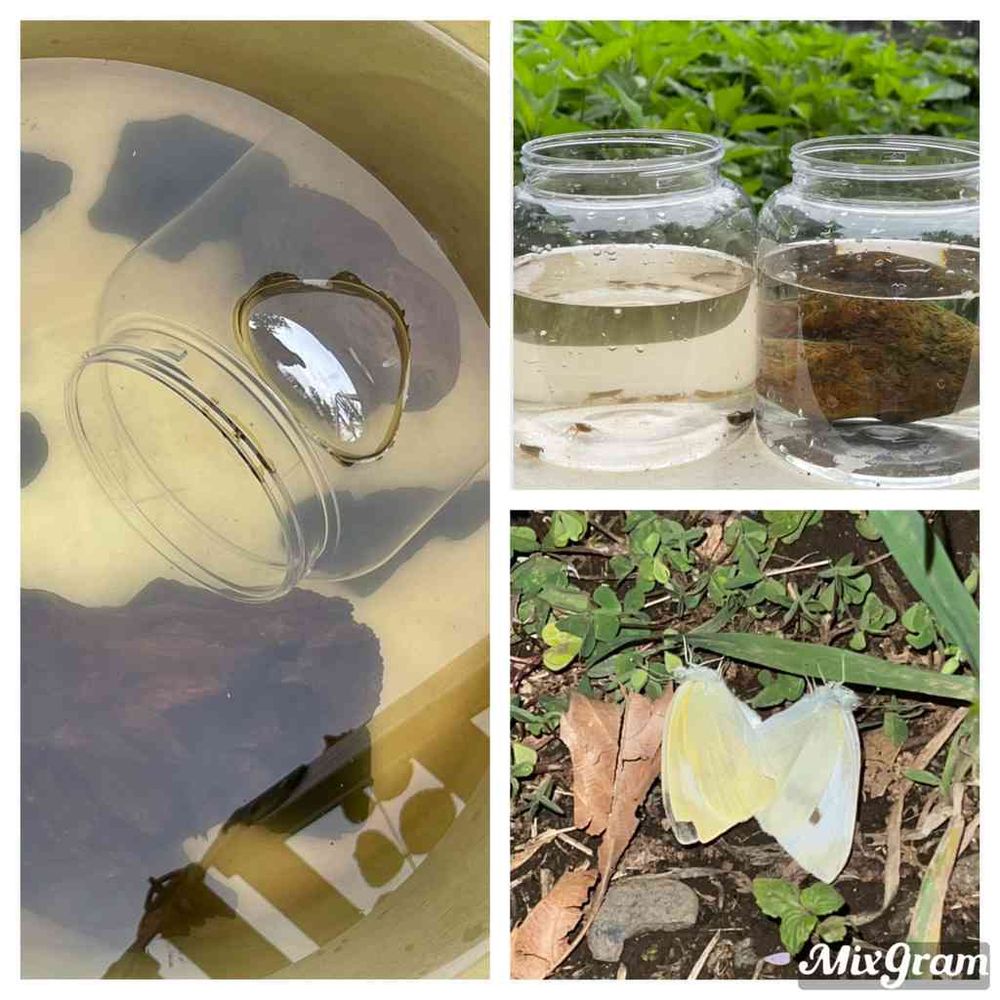 大きめの樽を用意して..と思って泥んこの沈んだ樽を洗い始めようとしたら 👀なんと‼︎ ヤゴさんが沢山現れてビックリ‼️