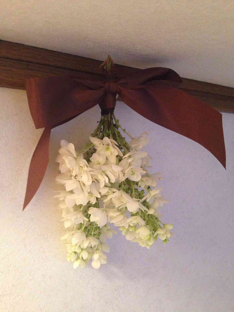 紫陽花のドライフラワーをトイレに下向きに飾ると、おしもの病気にならないそう。飾りました。