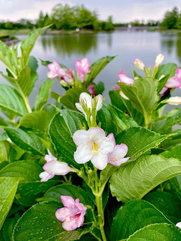 ニシキウツギと思ったけど葉っぱが丸いのでたぶんハコネウツギ。
