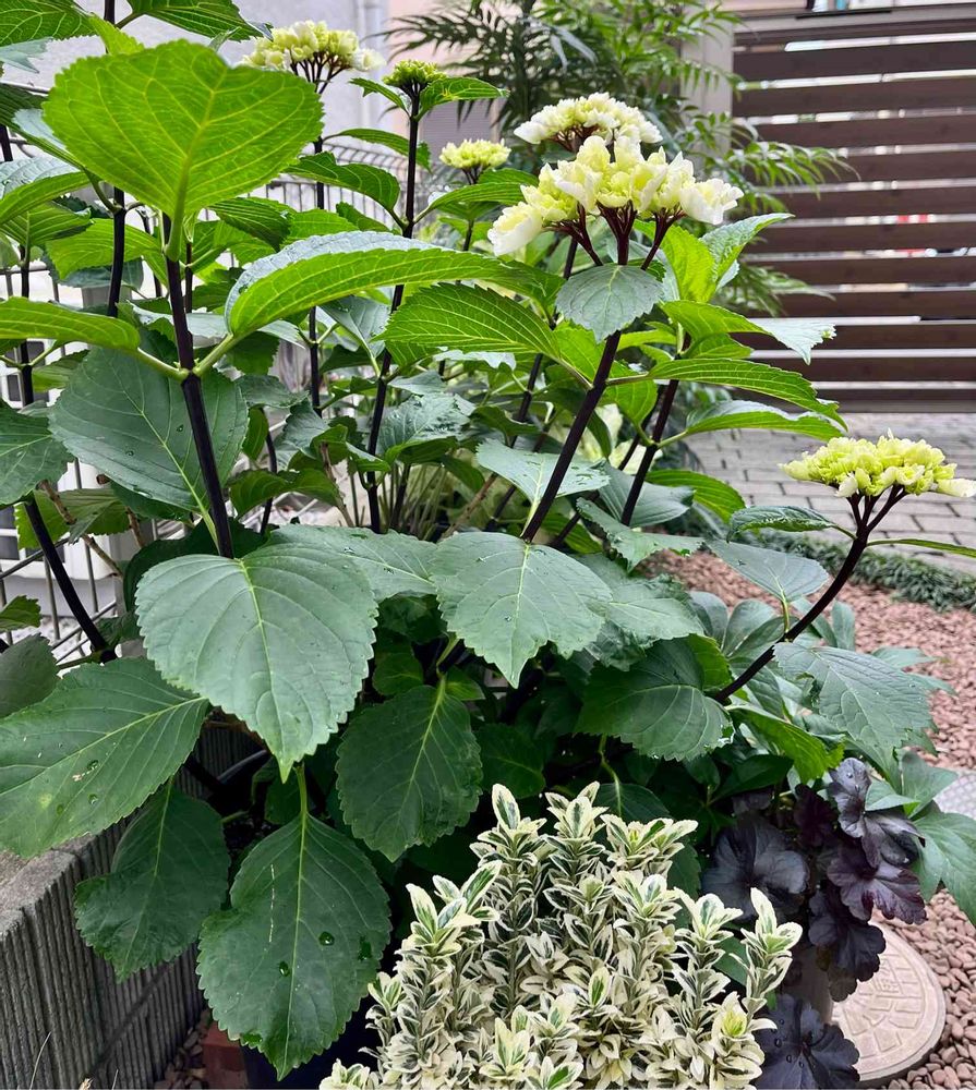 小さな庭,ヒューケラ,アジサイ ゼブラの投稿画像