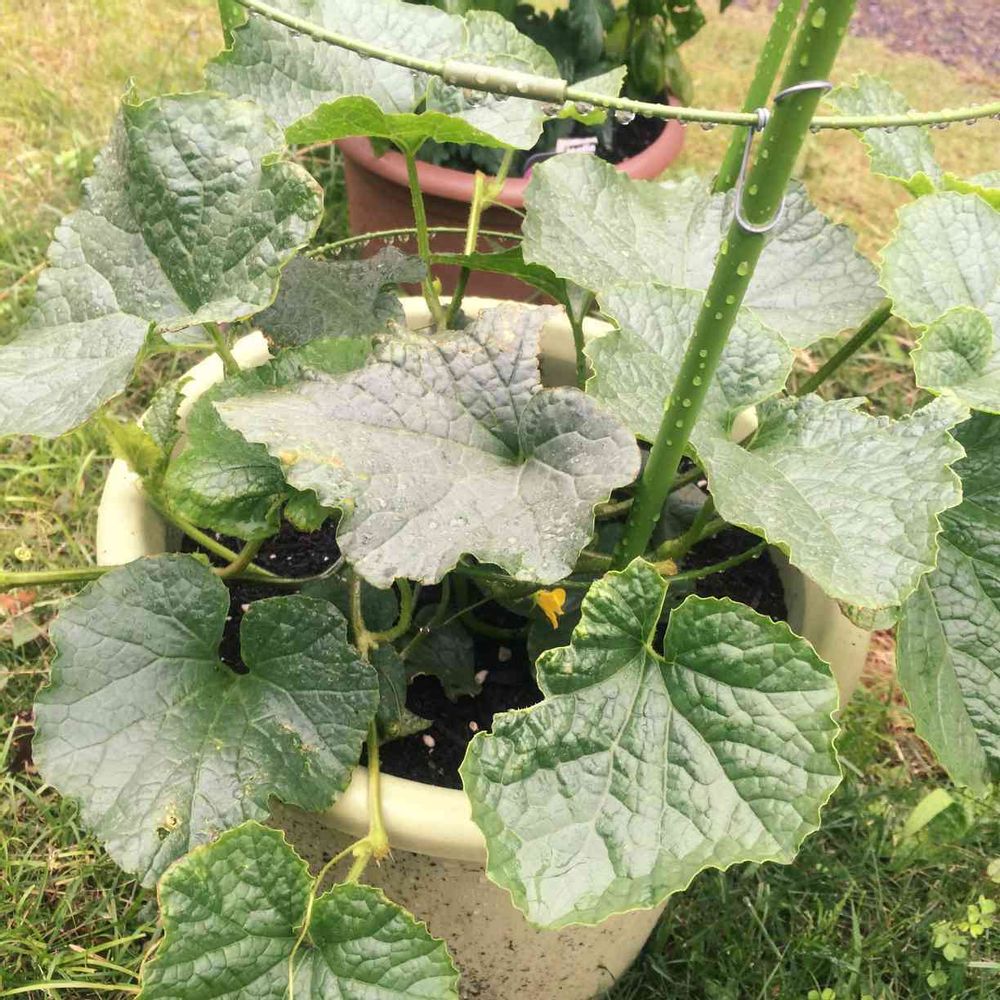 バナナウリの苗がやっと大きくなってきました。果実はバナナの様な食感で、味はメロンに似ているというウリだそうです。